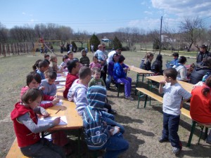 A gyermekek az asztaloknál rajzolhattak és mesejeleneteket színezhettek, valamint műveltségi, környezetvédelmi és egészségügyi tesztkérdésekre válaszolhattak. Lehetőségük volt még többféle memória kártyával is játszani.